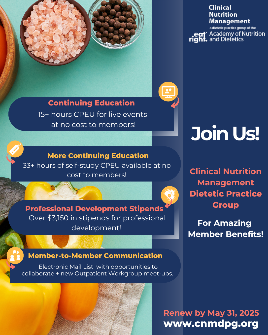 - CNM Annual Symposium where you can earn CPEUs, network with other members, and visit with vendors. Members receive discounted registration.